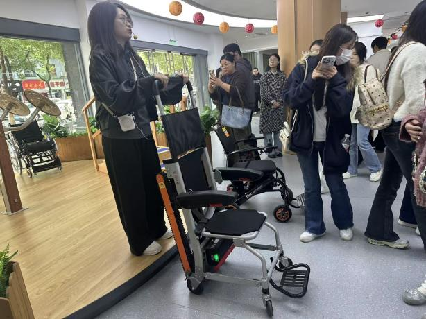 在体验馆专业讲解员的引导下,同学们沉浸式地参观了涵盖居家、社区、机构等多种场景的适老化空间样板间。从无障碍的卫浴系统、智能起身的护理床,到防滑防眩光的地面灯光设计、圆角处理的家具,再到融合了物联网技术的智慧养老平台,每一个细节都体现了设计者对老年人生理、心理需求的深度洞察与人文关怀。同学们不再是隔着屏幕看案例,而是亲手触摸材料,亲身体验设施,与馆内展示的各类适老化产品、智能辅具进行了深度互动。