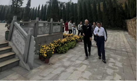 深秋的岳阳烈士陵园,松柏苍翠,庄严肃穆。活动伊始,全体党员教师手持鲜花,神情庄重,列队缓步绕陵园一周。他们步履沉稳,目光坚定,以此方式表达对长眠于此的革命先烈们的无限追思与崇高敬意。