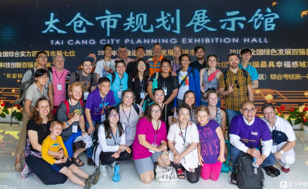 国际志愿者在太仓展馆合影留念