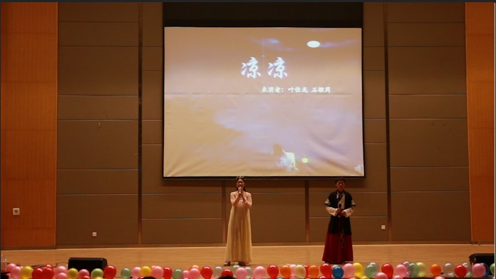 晚会初始,主持人上台致辞,表示了对到场老师同学的热烈欢迎,紧接着通过一段VCR让在场观众们了解了尽欢配音社的成长历程。接下来,信息系艺术团以一段优雅的舞蹈《粉墨》拉开了舞蹈的序幕,表演者们灵活而娇俏的身姿引起了现场一阵阵热烈的掌声;第二个表演的节目是来自武汉传媒学院的醉墨青山配音社带来的配音节目《身临其境》,醉墨青山配音社成员们精湛的配音技术也引起了在场观众的阵阵惊叹。尽欢配音社的社员们也给在场的观众们带来了许多精彩绝伦的表演:婀娜多姿的古典舞《牵丝戏》;声动尘梁的歌曲《凉凉》等等,最终以尽欢配音社的配音节目《声入人心》圆满落幕。