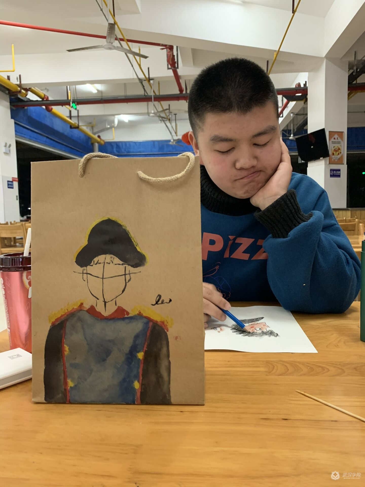 经过4月2日至4日三天的报名与纸袋分发、4月7日作品的收集、后期青协内部投票初选出35位优秀者及微信的最终投票,英语1601班的学生曾沛文获得第一名。他根据2017年青协举办的英语文化节中异国风情展上的一套走秀服装的灵感完成了设计,想借此表达对在外语系学生会工作的美好时光的追忆,还有对当时一起共事的学生会、青协、艺术团的好伙伴们的友情的珍视,希望大家都有美好的前程及图上画的这样的禁卫军的守护。