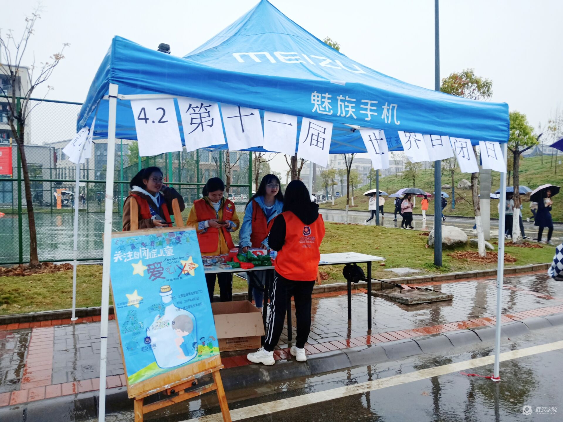 4月2日是第十二个世界自闭症关注日,为了让更多的人了解自闭症,给予“来自星星的孩子们”更多的关爱,传播系守望星愿公益队在楚园餐厅和汉园篮球场两个摆摊点,于上午8:00开始“让爱来,让碍走”义卖活动。